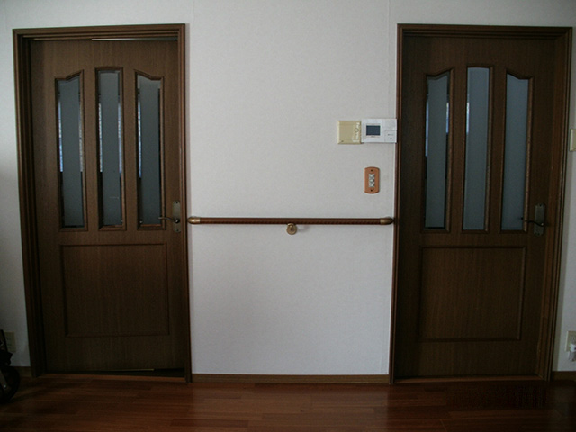 室内車椅子の生活の中から介助が無くても自力で歩行出来るようにしたい。動線に手摺りが有ると良い。